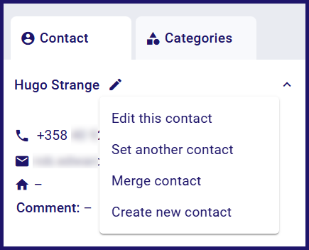 If you receive a call or message from a contact and you believe that this customer has other information attached to a different contact card, you can search for and merge the contacts.